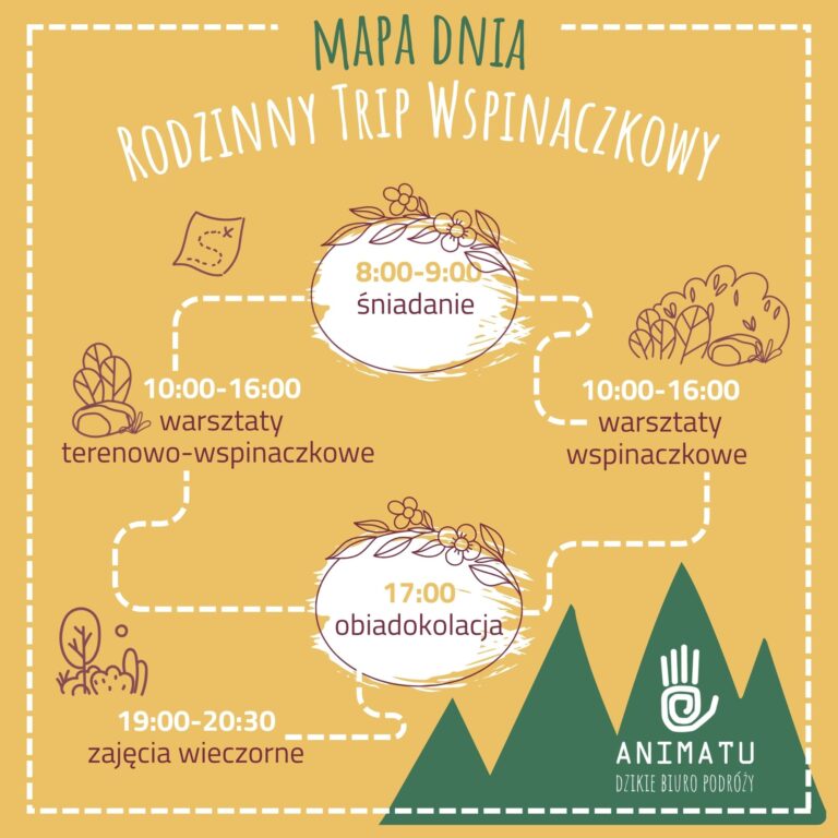 Podczas każdego z tripów rodzice i dzieciaki wspinają się pod okiem instruktorów. Jeśli ktoś nie chce się wspinać – nic nie szkodzi, dzieciom zorganizujemy czas w inny sposób, a dorośli chyba chętnie po prostu odpoczną, prawda? Dajemy czas i przestrzeń na relaks, zapewniając np. wyżywienie, bo chyba żadna mama (ani tata!) nie chce gotować podczas urlopu?